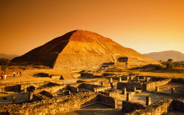 The amazing pyramid of Sun at Teotihuacan have same base areas as that of great pyramid of Giza, having only half of height of pyramid of Giza. The ancient pyramids found at Teotihuacan built using rubble and abode bricks.