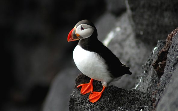 Atlantic puffin is a small, well-adapted seabird that found across the coast of Northern United States and Eastern Canada. Atlantic puffins are also known as ‘sea parrot’ due to their huge, multi-colored bill and penguin-like coloration. Atlantic puffins spend most of their lives on sea. Their water-resistant feathers keep their body warm while swimming. They flap their wings to swim on the surface and underwater.